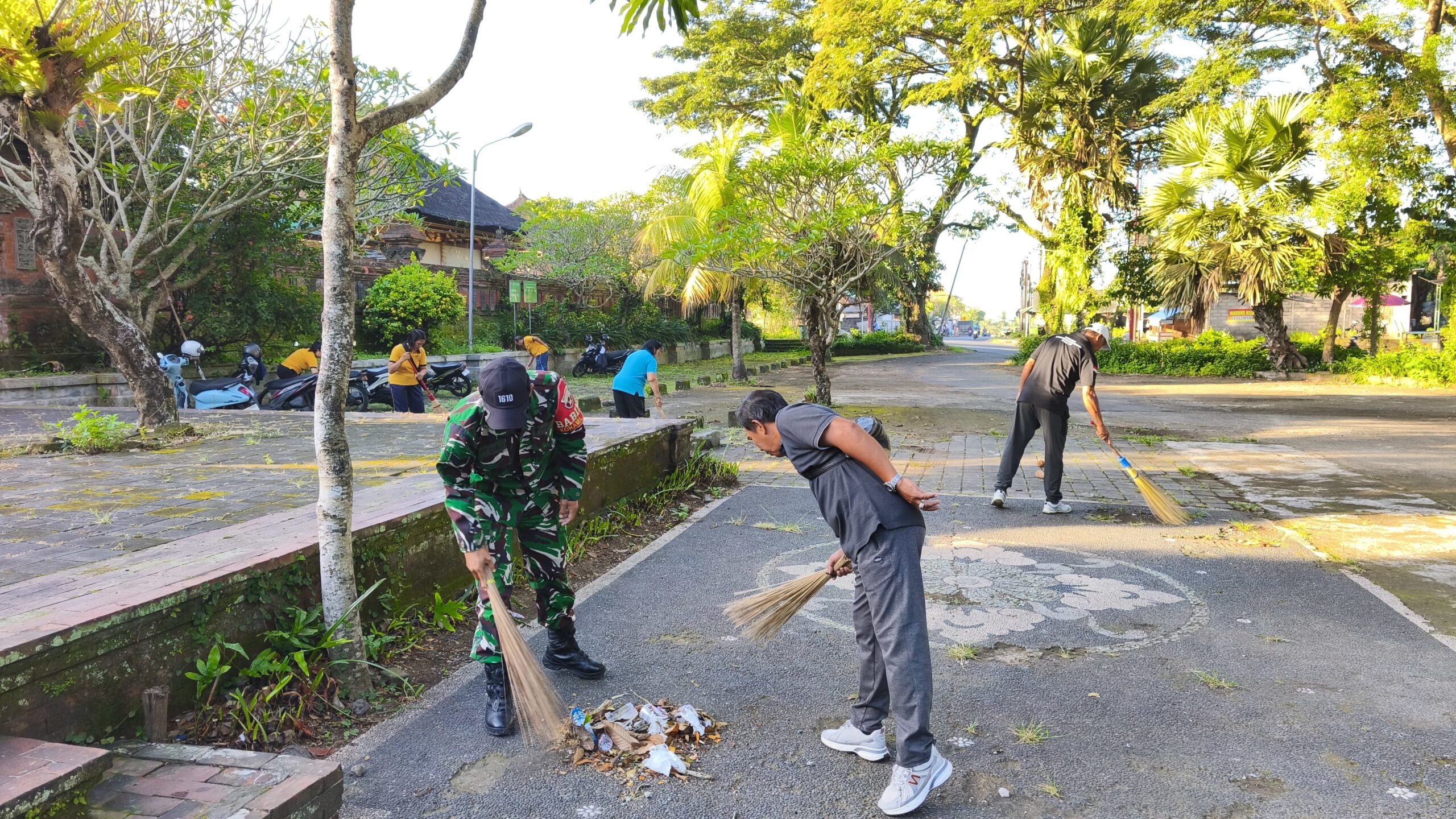 Klungkung – Dalam perannya sebagai garda terdepan TNI AD di tingkat desa, Babinsa tidak hanya bertugas menjaga keamanan, tetapi juga berkomitmen untuk menjadi pelopor dalam berbagai kegiatan di masyarakat. Hal ini diungkapkan oleh Serka Dewa Putu Carma Mudita, Babinsa dari Koramil 1610-02/Banjarangkan, saat menghadiri acara gotong royong membersihkan lingkungan di Pura Agung Kentel Gumi, Desa Tusan, Kecamatan Banjarangkan, Kabupaten Klungkung pada Jumat, 10 April 2026.