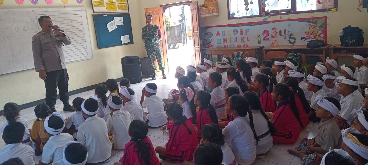 Dalam kesempatan tersebut, Sertu Suwidia dan Aiptu Kadek Juli Wahyu Triana memberikan arahan penting mengenai bahaya bullying serta pentingnya mematuhi tata tertib berlalu lintas sejak dini. Materi yang disampaikan bertujuan untuk menanamkan kesadaran akan pentingnya sikap saling menghormati, anti-kekerasan, serta kepatuhan terhadap aturan lalu lintas demi keselamatan bersama.