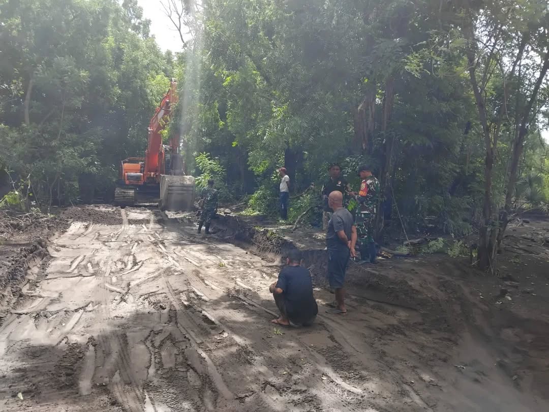 Flores Timur, 24 Desember 2025 – Dalam upaya mempercepat pemulihan infrastruktur yang terdampak bencana, Babinsa dari Koramil 1624-06/Wulanggitang mengambil inisiatif untuk mengamankan dan mendampingi kegiatan pembersihan jalan yang menghubungkan Kabupaten Nobo dan Nurabelen. Kegiatan ini dimulai pada pukul 08.30 WITA dan melibatkan sejumlah anggota, termasuk Serka Melky, Praka Primus Lake, Praka Almunawir, dan Praka Muhlis Pistun.