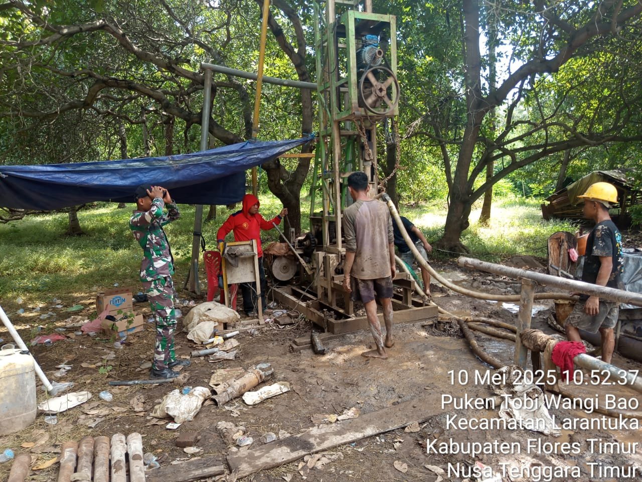 Flotim – Untuk meningkatkan kesehatan masyarakat serta kebutuhan sarana air bersih di di tengah musim kemarau, TNI Manunggal Membangun Desa (TMMD) ke 124 TA 2025, Kodim 1624/Flotim, membuat 2 sumur bor tersebar di Kelurahan Puken Tobi Wangibao dan Kelurahan Sarotari, Kecamatan Larantuka, Kabupaten Flotim. Minggu (11/05/2025).