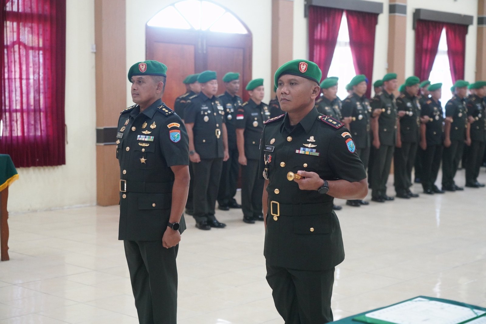 Sintang – Komandan Korem 121/Abw, Brigjen TNI Purnomosidi, S.I.P., M.A.P., M.Han., Pimpin langsung pelaksanaan upacara Serah Terima Jabatan (Sertijab) dan tradisi Komandan Kodim 1206/Putussibau yang digelar di Aula Korem 121/Abw, Sintang, Kalimantan Barat, Rabu (30/07/2025).