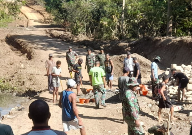 Mendapati ada warganya yang tengah kesulitan dan membutuhkan pertolongan, tanpa ragu – ragu Koptu Darmawan langsung turun tangan ikut membantu proses pembangunan salah satu Rumah warga binaan yang memasuki tahap pengikatan Batu Bata.