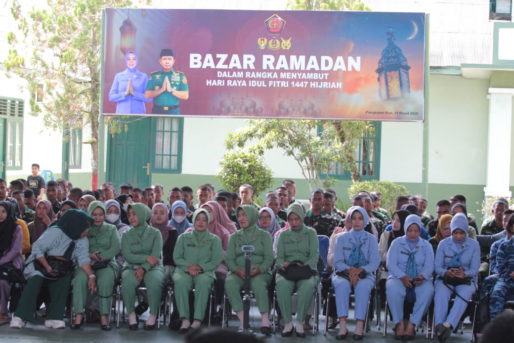 Pangkalan Bun – Dalam rangka menyambut Hari Raya Idul Fitri 1447 Hijriah, TNI menggelar kegiatan Vicon dan Bazar Ramadhan di Makodim 1014/Pangkalan Bun, yang berlokasi di Jalan P. Antasari, Kelurahan Raja, Kecamatan Arut Selatan, Kabupaten Kotawaringin Barat, pada hari Jumat (13/3/2026) pukul 08.00 WIB. Kegiatan ini dihadiri secara virtual oleh seluruh jajaran TNI dan merupakan bagian dari inisiatif yang diadakan serentak di berbagai daerah di Indonesia untuk membantu memenuhi kebutuhan pokok prajurit, pegawai negeri sipil (PNS) TNI, serta masyarakat menjelang Lebaran.