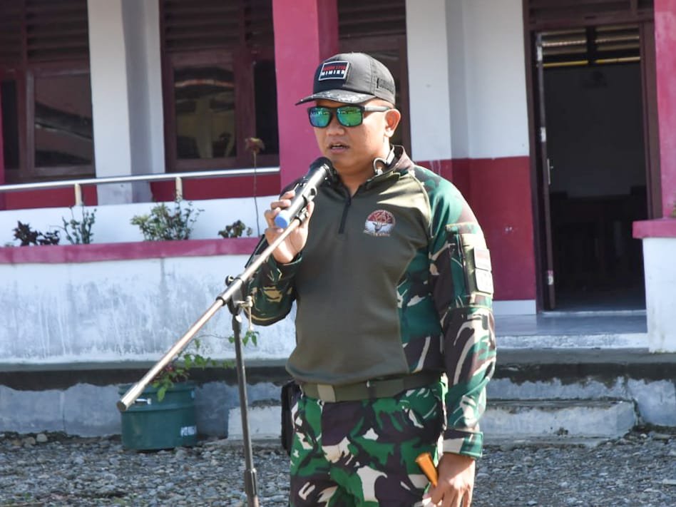 Komandan Satuan Tugas (Dansatgas) TNI Manunggal Membangun Desa (TMMD) Ke-124 Kodim 1710/Mimika Letkol Inf M. Slamet Wijaya, S. Sos., M. Han., M.A. memimpin apel pagi sebelum melanjutkan pekerjaan di lokasi kegiatan TMMD, Kampung Pigapu, Distrik Iwaka, Kab. Mimika, Jumat (09/5/2025)