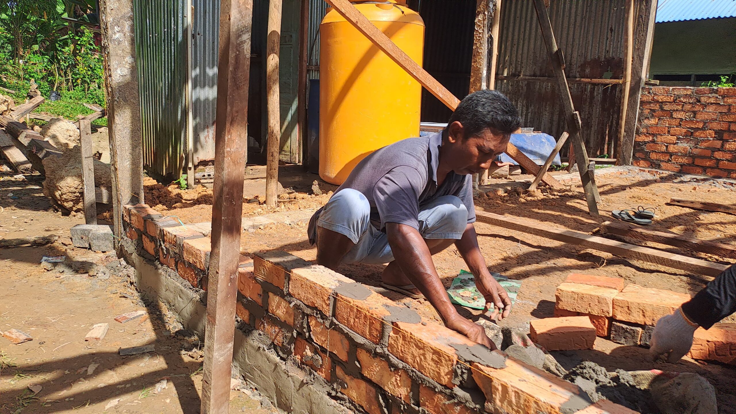 Serma Erwin Tuanhu, salah seorang anggota Satgas TMMD yang turut serta dalam pengerjaan RTLH Bapak Jailani, menjelaskan progres pekerjaan yang dicapai. “Untuk hari ini, kami fokus pada pemasangan dinding bata. Kerja gotong royong bersama warga sangat efektif, selain mempercepat, juga mempererat silaturahmi. Partisipasi sukarela warga dalam berbagai pekerjaan, mulai dari mencampur adonan semen hingga mengangkat bata, sangat kami apresiasi,” ujar Serma Erwin Tuanhu, menggambarkan semangat kolaborasi yang tinggi di lapangan. Pemasangan dinding bata ini menandai langkah penting dalam transformasi rumah Bapak Jailani menjadi lebih kokoh dan layak huni.