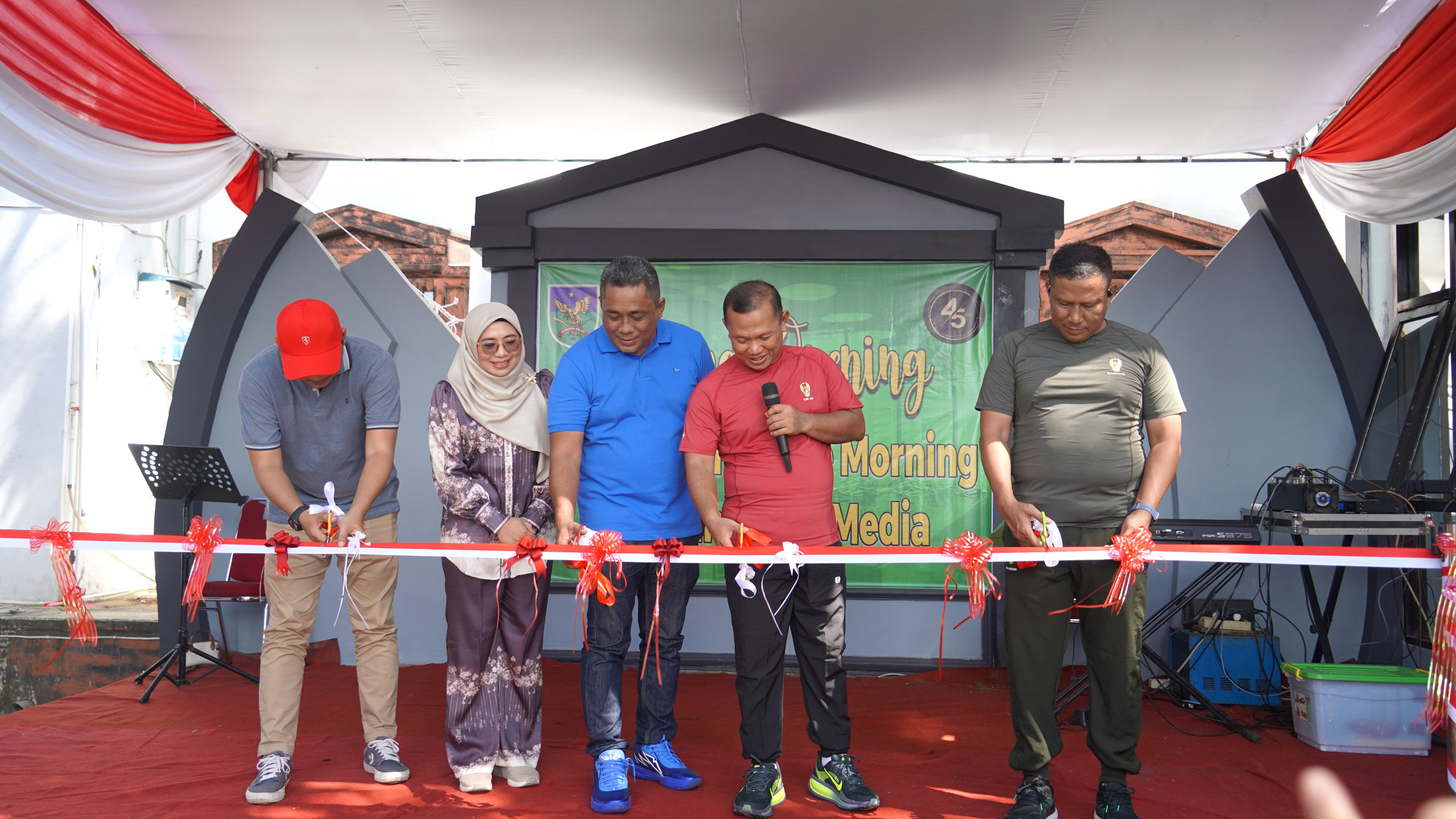 Bengkulu – Pada hari Jumat (30 Januari 2026), Komandan Korem 041/Gamas, Brigjen TNI Jatmiko Aryanto, S.E., M.Han., meresmikan Grand Opening Cafe 45, yang berlokasi di samping Gedung Juang Makorem 041/Gamas. Peresmian ini ditandai dengan pengguntingan pita yang dilakukan oleh Danrem, diikuti dengan coffee morning bersama awak media di Provinsi Bengkulu.