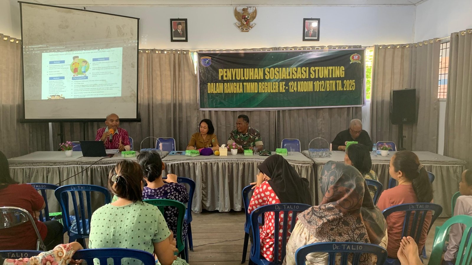 Barito Selatan – Sebagai bagian dari sasaran non fisik TMMD Reguler Ke-124, Dinas Kesehatan Kabupaten Barito Selatan menggelar penyuluhan stunting di Balai Desa Talio, Kecamatan Karau Kuala. Kegiatan ini bertujuan memberikan pemahaman mendalam kepada masyarakat tentang bahaya stunting dan langkah-langkah pencegahannya.