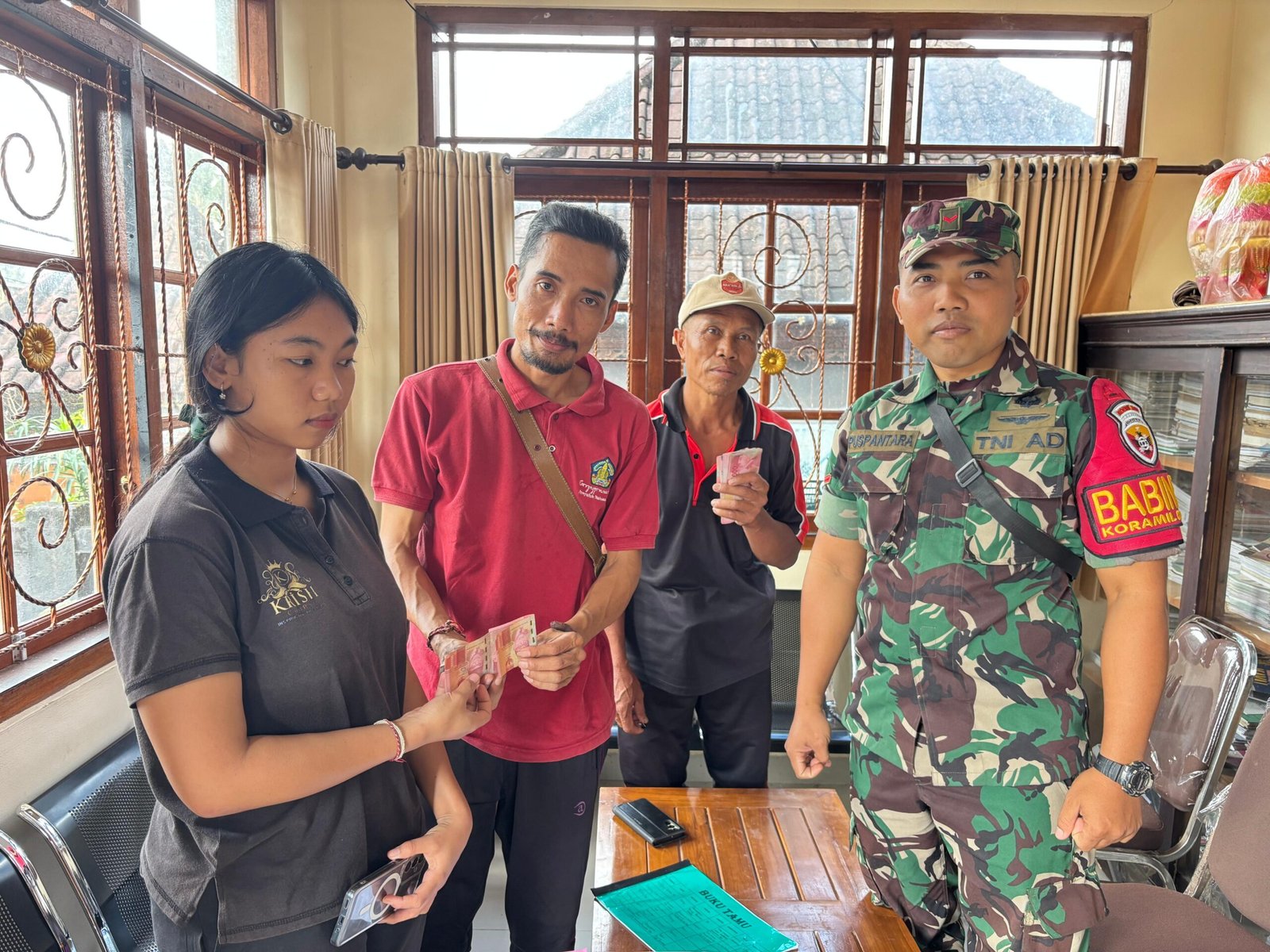 Klungkung,- Sebagai wujud tanggungjawab, Babinsa Tohpati Kopda Komang Puspantara melaksanakan pendampingan sekaligus pengamanan penyaluran Bantuan Langsung Tunai Dana Desa ( BLT DD ) tahap VIII bulan Agustus tahun 2025 kepada warga penerima manfaat, Selasa ( 05/08/25 ).