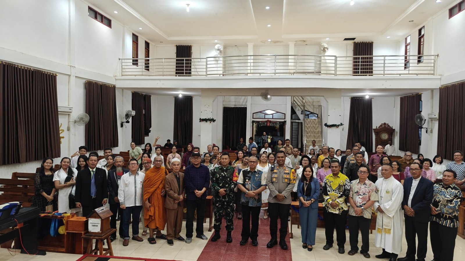 Jajaran Forkopimda Kabupaten Tulang Bawang, melakukan monitoring ke sejumlah Gereja dan Pos Pengamanan pada malam Natal untuk memastikan perayaan Natal dan pelaksanaan ibadah menyambut Hari Raya Natal berjalan aman, Selasa 24 Desember 2024.