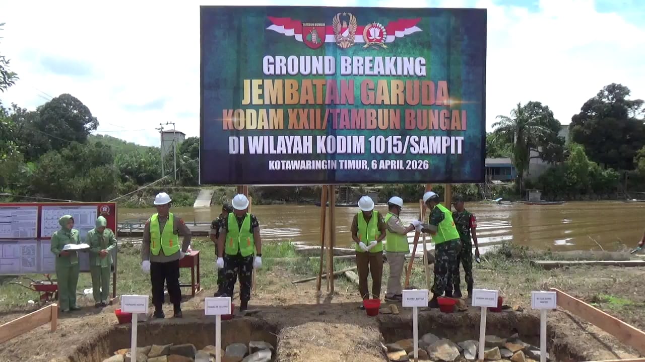 Kotawaringin Timur – Komandan Kodim 1015/Sampit, Letkol Inf Dwi Candra Setyawan, berpartisipasi dalam acara Ground Breaking pembangunan Jembatan Perintis Garuda XXII/Tambun Bungai yang berlangsung di Dusun Tandang, Desa Barunang Miri, Kecamatan Parenggean, Kabupaten Kotawaringin Timur, pada Senin (6/4/2026). Acara ini juga dihadiri oleh Danrem 102/Panju Panjung, Brigjen TNI Wimoko, S.E., M.Si, beserta Kasiter Kasrem 102/Pjg, perwakilan Bupati Kotim, Kapolres Kotim yang diwakili oleh Kabagops Polres Kotim, serta berbagai tokoh masyarakat dan undangan lainnya.