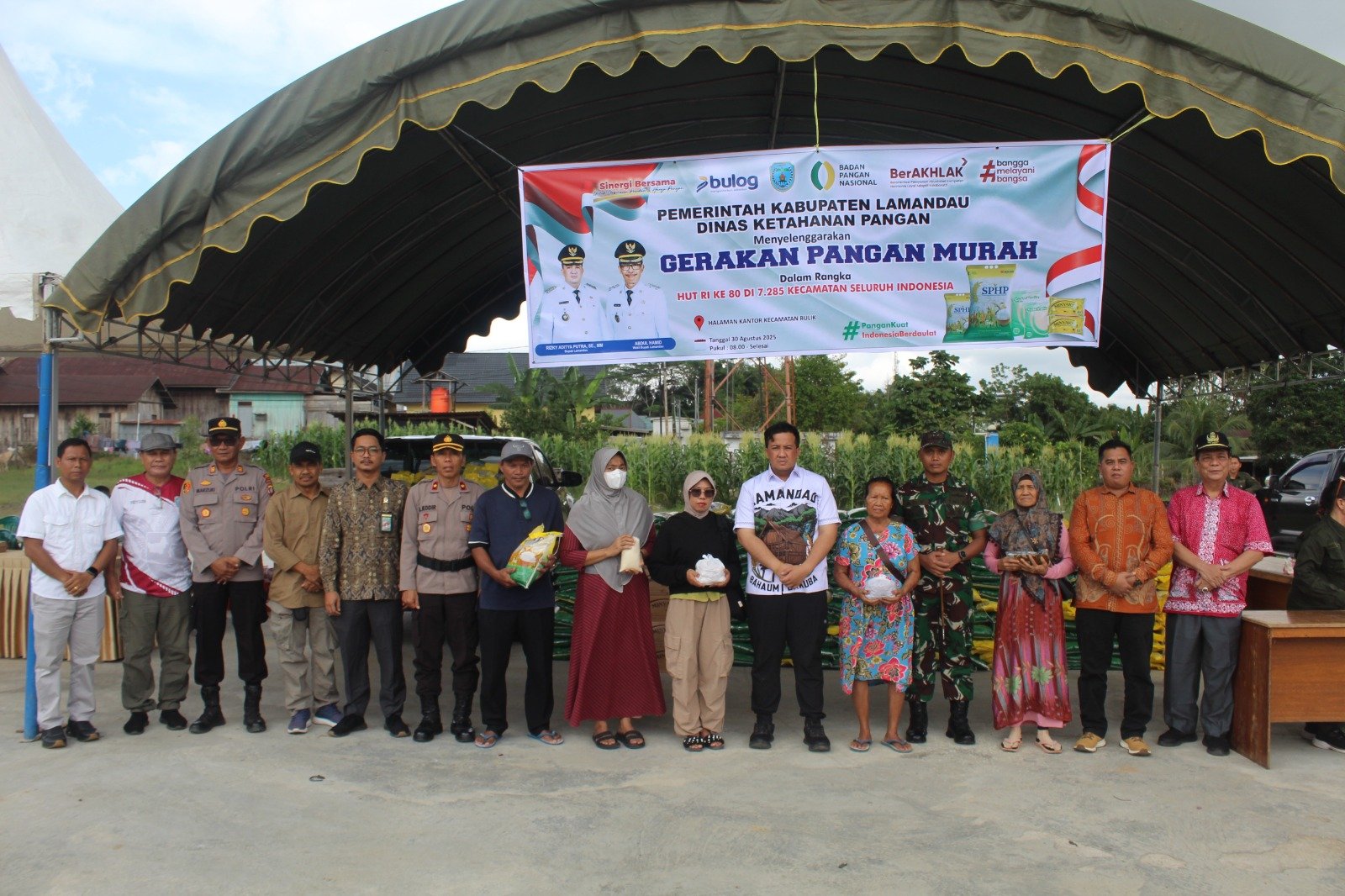 Lamandau – Komandan Kodim 1017/Lmd, Letkol Arm Ady Kurniawan, M.Han., bersama Bupati Lamandau, Rizky Aditya Putra, S.E., M.M., dan jajaran Forum Koordinasi Pimpinan Daerah (Forkopimda) Lamandau menghadiri kegiatan Gerakan Pangan Murah (GPM) Serentak dalam rangka memperingati Hari Ulang Tahun ke-80 Kemerdekaan Republik Indonesia.