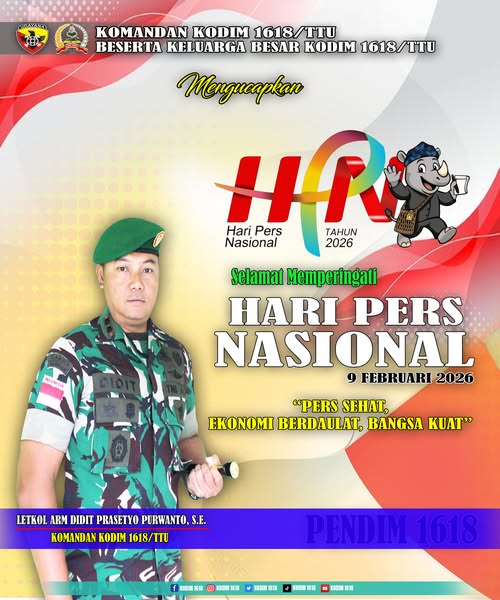 TTU – Dalam rangka memperingati Hari Pers Nasional (HPN) yang jatuh pada 9 Februari 2026, Komandan Kodim 1618/Timor Tengah Utara (TTU) memberikan ucapan selamat dan penghargaan kepada para jurnalis yang telah berkontribusi aktif dalam menyebarkan informasi kepada publik.