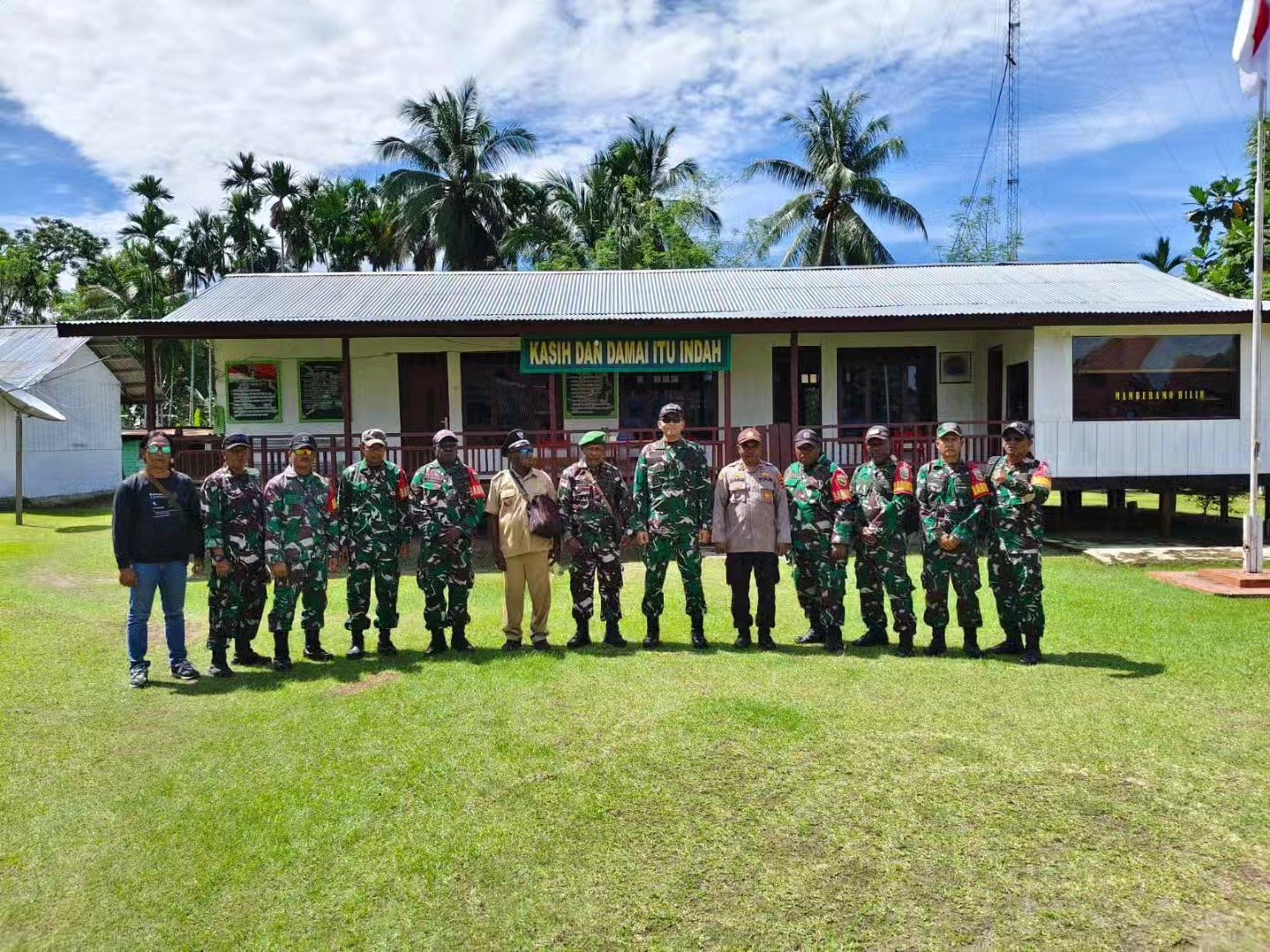 Kegiatan kunjungan kerja berlangsung lancar dan ditutup dengan sesi foto bersama serta pengecekan fasilitas Koramil 1712-04/Mamberamo Hilir.