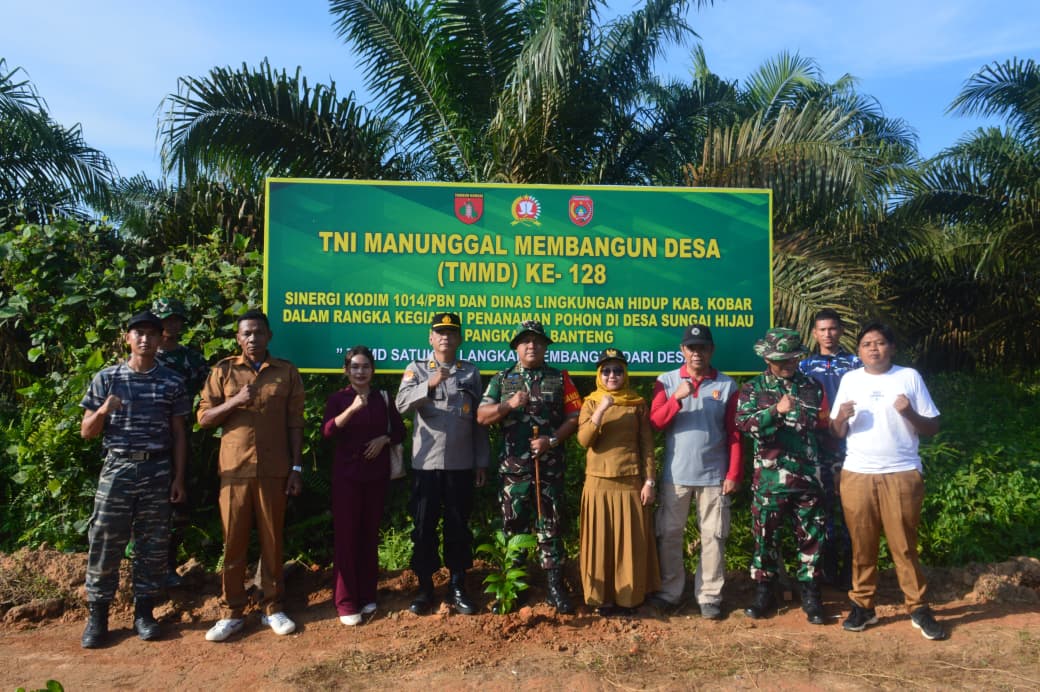 Pangkalan Banteng – Kepedulian terhadap lingkungan terus ditunjukkan dalam pelaksanaan TMMD Ke-128 Kodim 1014/Pbn melalui kegiatan penghijauan di Desa Sungai Hijau, Kecamatan Pangkalan Banteng, Rabu (29/04/2026).