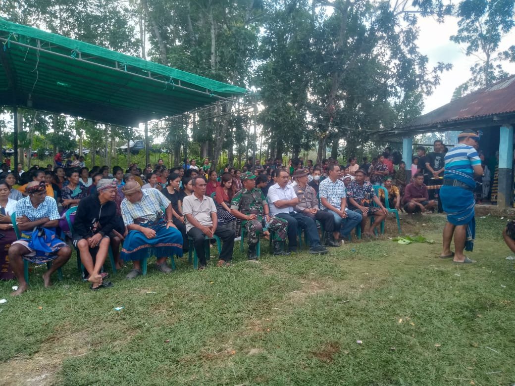 SUMBA BARAT – Danramil 01/Loli Kodim 1613/Sumba Barat, Kapten Inf I Nyoman Sukada, bersama anggota mendampingi pemerintah Kecamatan Loli dan Kecamatan Kota Waikabubak dalam kegiatan mediasi permasalahan antarwarga, bertempat di Kelurahan Sobawawi, Kecamatan Loli, Kabupaten Sumba Barat, Minggu (20/7/2025).