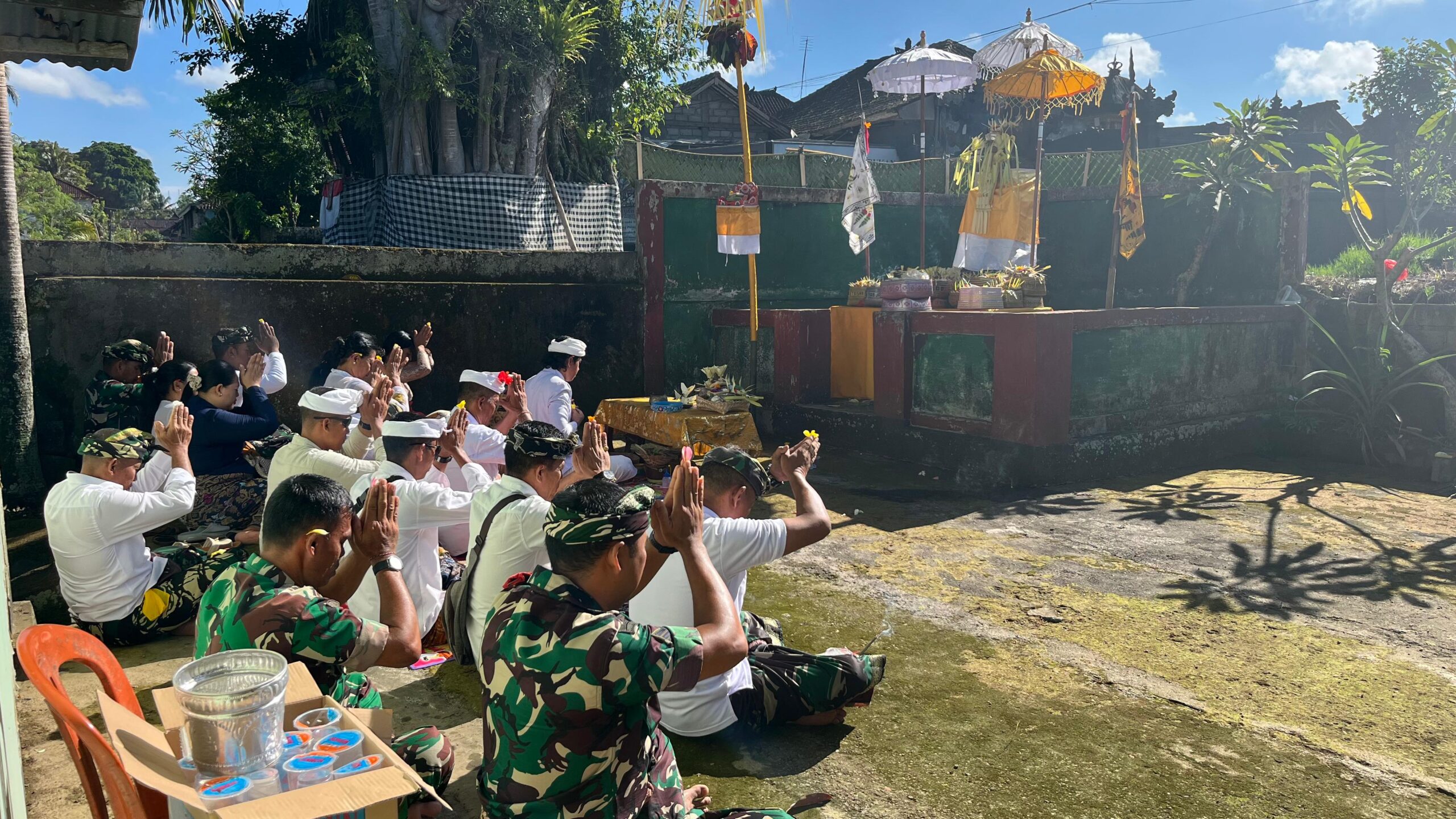 Bangli – Dalam rangka pelaksanaan Upacara Piodalan yang bertepatan dengan Purnama Kedasa, Danramil 1626-01/Bangli, Kapten Cke I Komang Gita, memimpin kegiatan persembahyangan bersama yang diikuti oleh anggota Koramil 1626-01/Bangli dan keluarga besar di Padmasana Koramil, yang terletak di Kelurahan Bebalang, Kecamatan/Kabupaten Bangli pada hari Kamis, 2 April 2026.