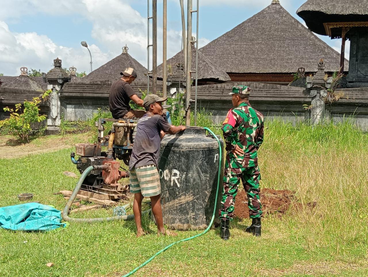 Bangli – Untuk meningkatkan ketersediaan air bersih bagi warganya, Danramil 1626-01/Bangli, Kapten Cke I Komang Gita, bersama Babinsa Desa Kayubihi, Serka I Wayan Suastika, melakukan pendampingan serta pemantauan terhadap pembuatan sumur bor yang merupakan bantuan dari Danrem 163/WSA. Kegiatan ini berlangsung di Pura Puseh Desa Kayubihi, Kecamatan/Kabupaten Bangli pada Rabu, 1 April 2026.