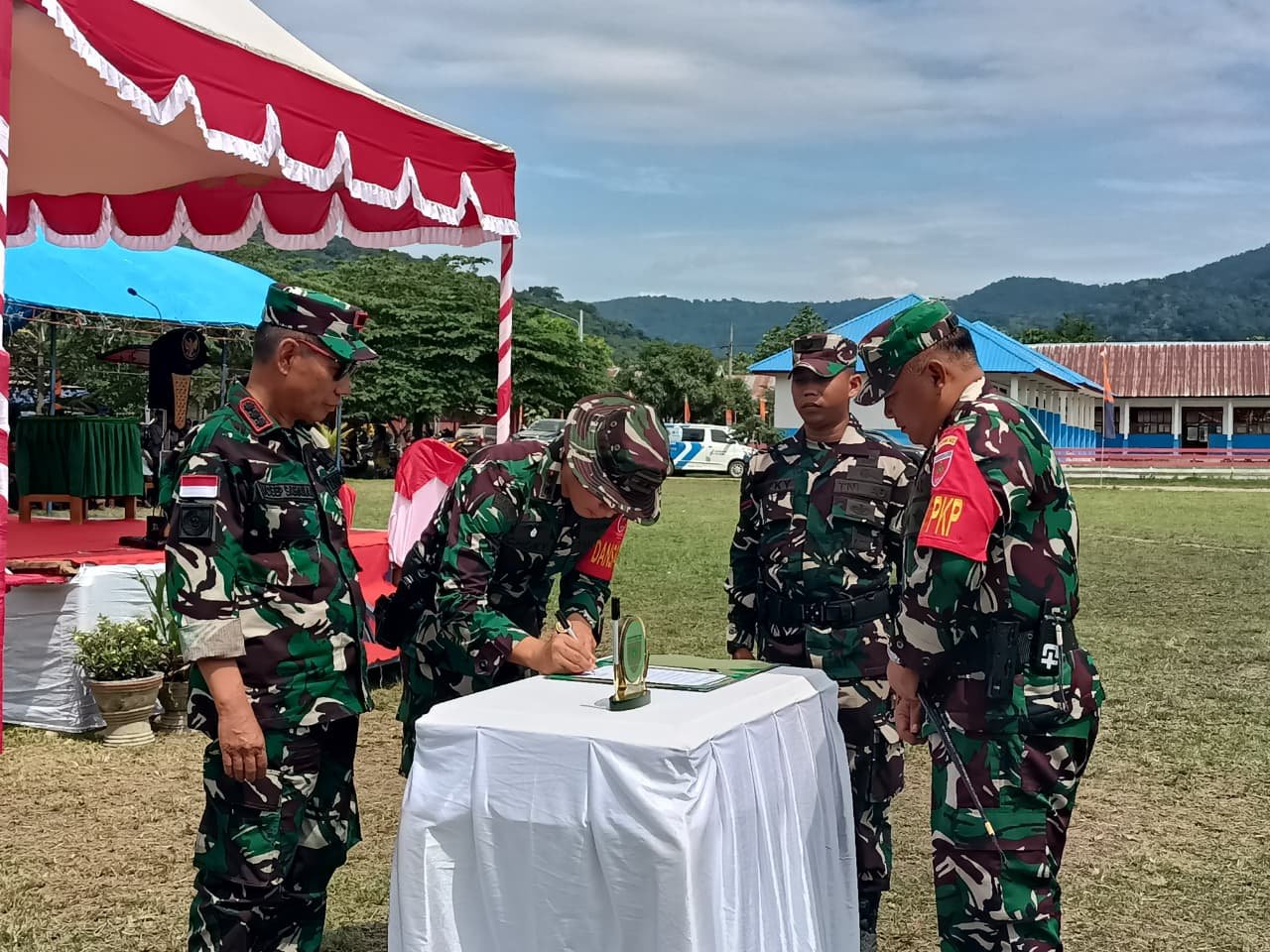 Upacara penutupan diakhiri dengan peninjauan lokasi sasaran TMMD serta penyerahan simbolis hasil pembangunan kepada pemerintah daerah dan masyarakat Kecamatan Ueesi.