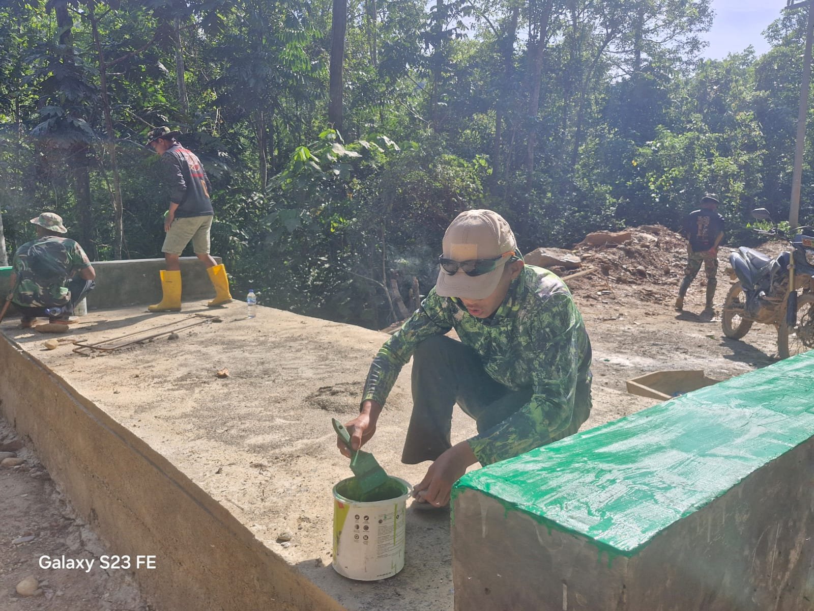 Pengecatan ini menjadi bagian dari tahap penyempurnaan agar hasil pembangunan tidak hanya kokoh secara konstruksi, tetapi juga rapi dan layak secara visual. Anggota Satgas terlihat bekerja bersama-sama melakukan pengecatan dinding dan permukaan deker menggunakan cat anti-air untuk menjaga ketahanan jangka panjang.