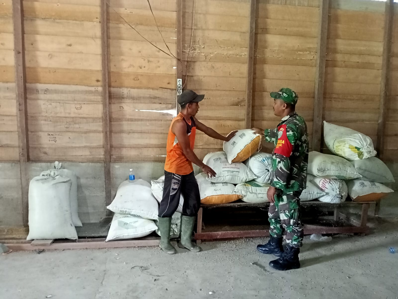 ACEH BARAT – Sebagai wujud nyata kemanunggalan TNI dengan rakyat, khususnya dalam mendukung program ketahanan pangan nasional, Babinsa Posramil 05/Pante Ceureumen Kodim 0105/Aceh Barat, Sertu Saefudin, melaksanakan kegiatan monitoring dan pengecekan terhadap padi hasil panen petani yang sedang diproses di kilang padi Desa Suwa Awe, Kecamatan Pante Ceureumen, Kabupaten Aceh Barat, Rabu (22/10/2025).