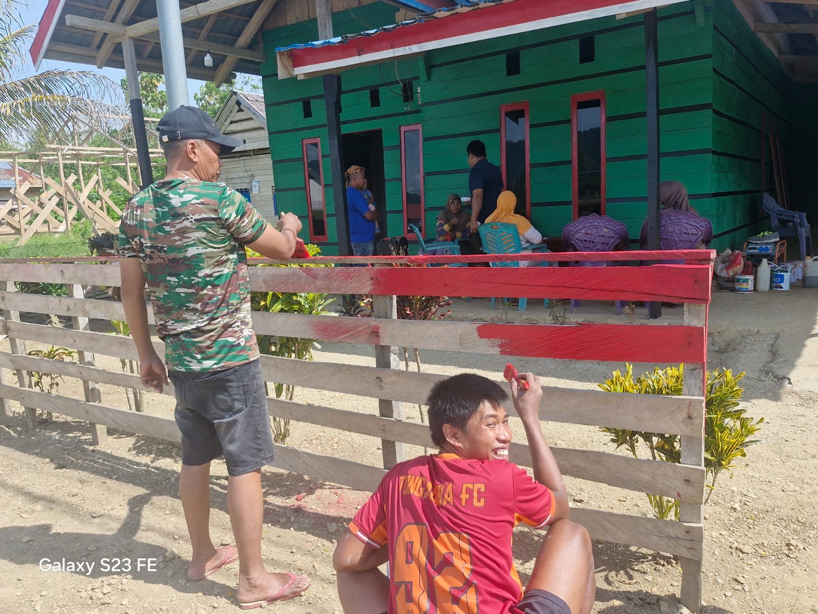 Tonggauna, 04 November 2025 – Para prajurit TMMD 126 tak hanya bekerja di lokasi sasaran pembangunan, tetapi juga menunjukkan kepedulian sosial kepada warga. Kapten Inf Sudarto, selaku Danpos sasaran jembatan, memimpin anggotanya melakukan pengecatan pagar di rumah warga yang telah menjadi tempat tinggal mereka selama bertugas.