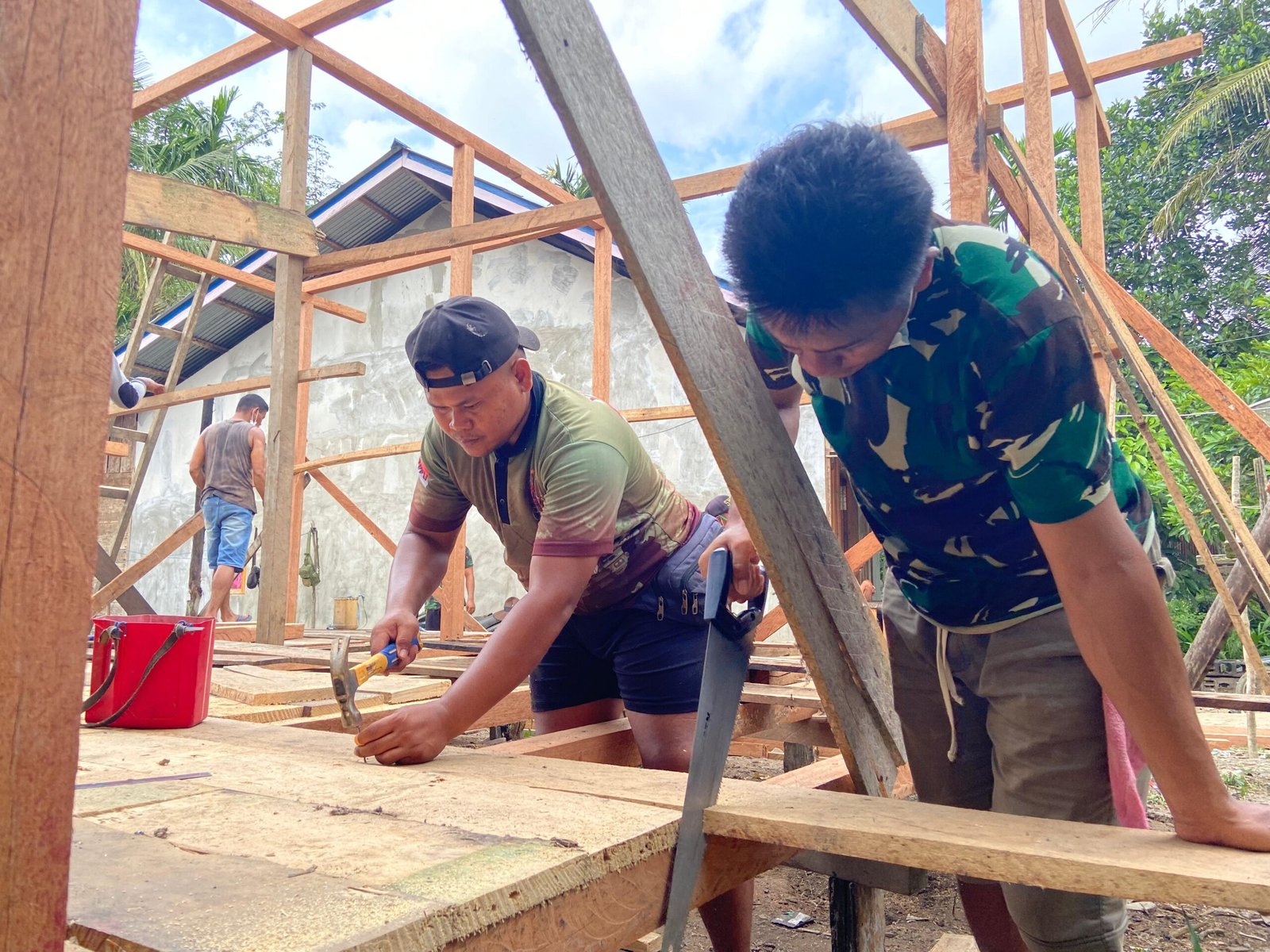 Pekerjaan dilakukan secara gotong royong, tidak hanya oleh Satgas TMMD, tetapi juga melibatkan warga desa yang turut membantu dan mendukung penuh setiap kegiatan.