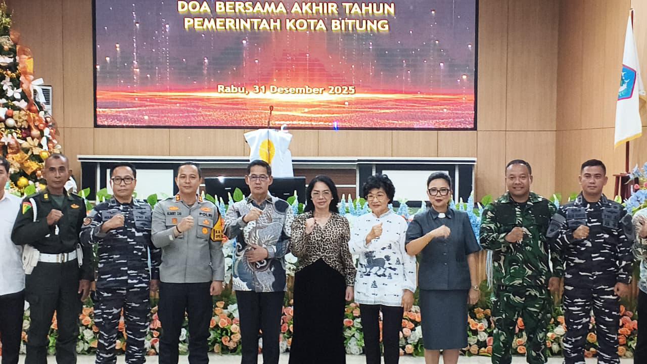 BITUNG – Dalam rangka menyambut pergantian tahun, Pemerintah Kota Bitung melalui Forum Koordinasi Pimpinan Daerah (Forkopimda) menggelar Ibadah Doa Bersama Akhir Tahun yang dilaksanakan di Gedung BPU S. H. Sarundajang, Jalan Sam Ratulangi No. 45, Kelurahan Bitung Barat Satu, Kecamatan Maesa, pada Rabu (31/12/2025).
