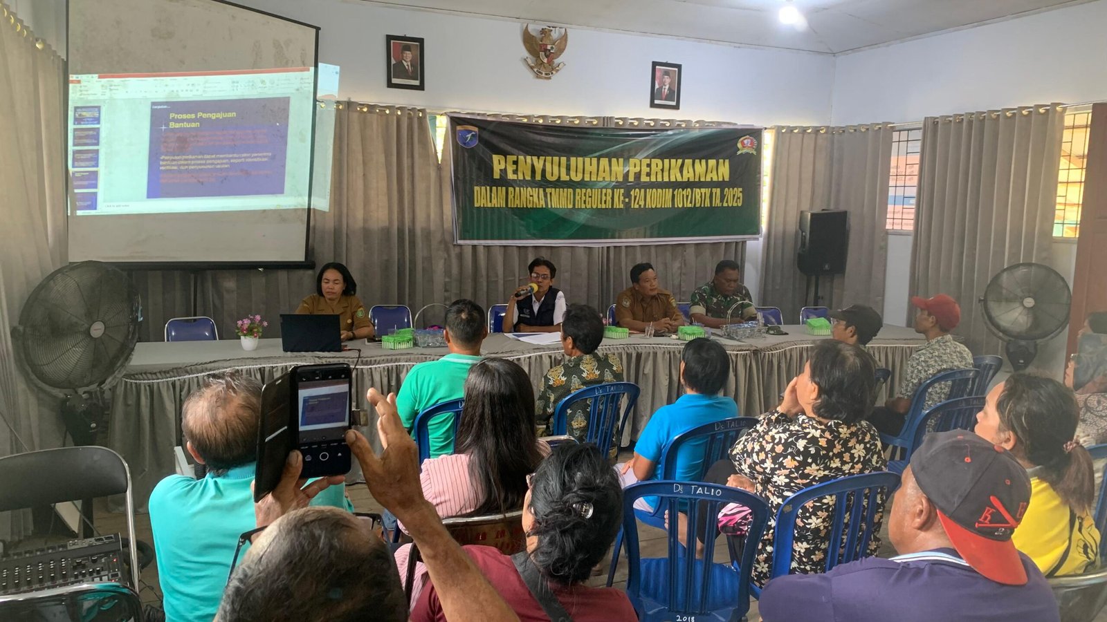 Barito Selatan – TMMD Ke-124 Kodim 1012/Buntok tidak hanya fokus pada pembangunan fisik, tetapi juga memperhatikan pembangunan sumber daya manusia. Salah satu bentuknya adalah pelaksanaan penyuluhan perikanan yang digelar di Balai Desa Talio, Kecamatan Karau Kuala, Kabupaten Barito Selatan.