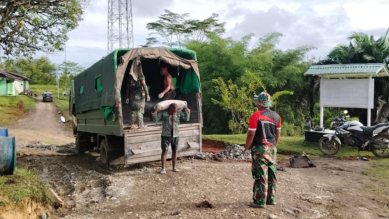 Setiap kali truk material tiba, warga bersama prajurit TNI langsung bahu-membahu menurunkan bahan dan menyalurkannya ke titik-titik kerja. Kebersamaan ini mencerminkan sinergi kuat antara TNI dan masyarakat dalam mewujudkan pembangunan desa.