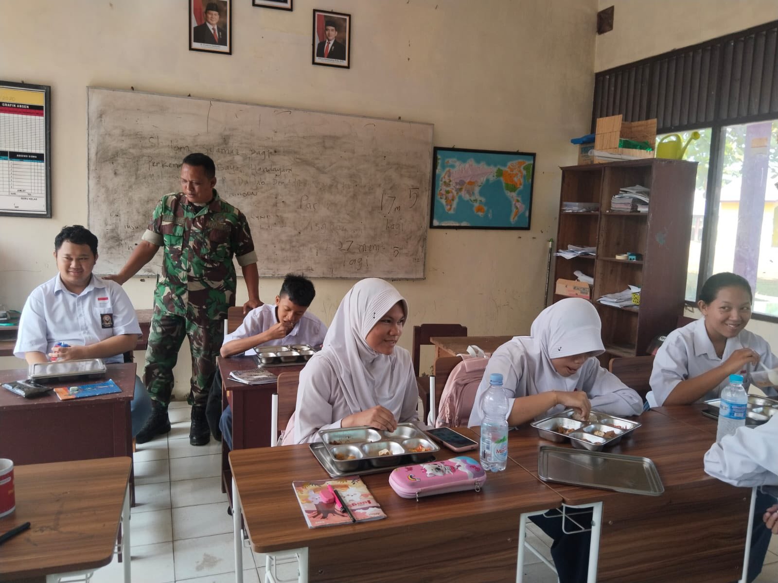 Barito Timur – Anggota Babinsa 1012-04/Dusun Timur Sertu Rodiansyah melaksanakan monitoring pendampingan pembagian program Makan Bergizi Gratis (MBG), yang bertempat di SLB Desa Matabu, Kecamatan Dusun Timur, Kabupaten Barito Timur, Pada hari senin, (13/10/2025).