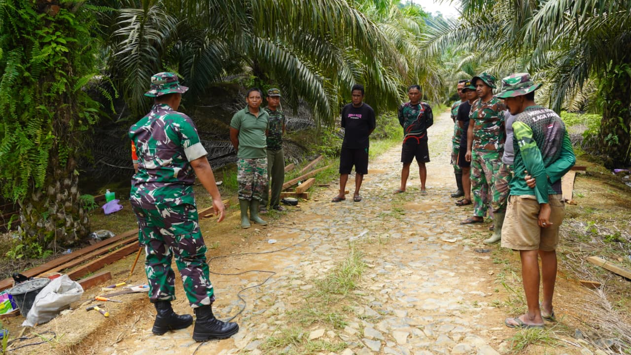 Kotawaringin Timur – Letkol Inf Dwi Candra Setyawan, selaku Komandan Satuan Tugas (Dansatgas) TMMD Reguler ke-127 Kodim 1015/Sampit, memberikan dorongan dan motivasi kepada anggota Satgas yang sedang melaksanakan tugas di lokasi perbaikan jembatan akses perkebunan. Kegiatan ini berlangsung di Desa Tri Buana, Kecamatan Telaga Antang, Kabupaten Kotawaringin Timur pada hari Minggu, 8 Maret 2026.