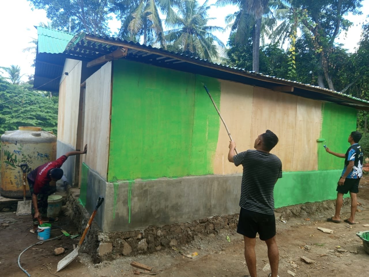 Pengecatan rumahnya menandai hampir selesainya pembangunan RTLH yang dilaksanakan Satgas TMMD. Florianus berharap kebaikan yang diterimanya dapat dibalas Tuhan kepada seluruh anggota TNI yang telah bekerja keras.