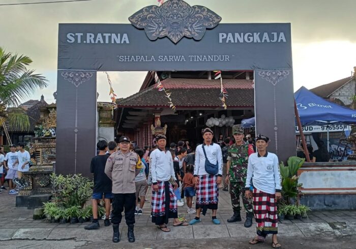Untuk kegiatan gotong royong ini kita laksanakan pembersihan sekitar areal pura sekaligus pemasangan wastra di Pura Pengerubungan Desa Tohpati, ‘terangnya.
