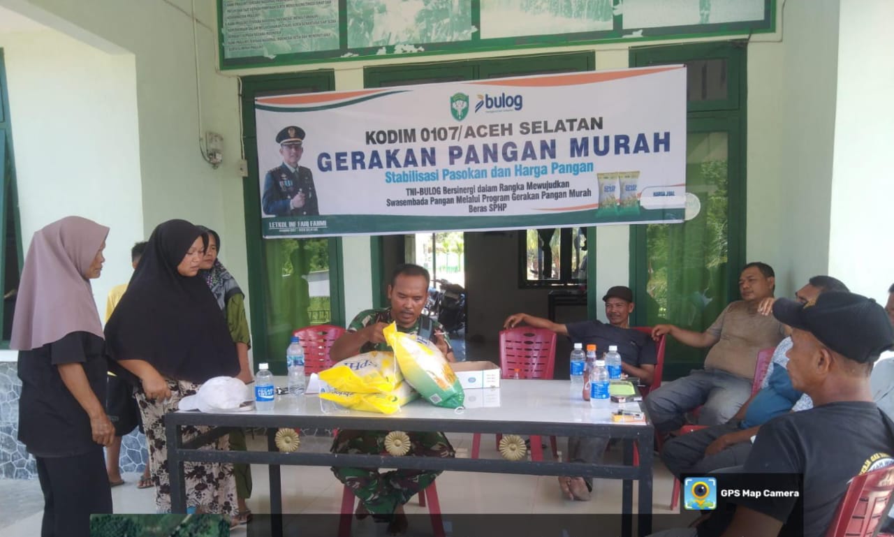 ACEH SELATAN – Program Gerakan Pangan Murah (GPM) yang digelar jajaran Kodim 0107/Aceh Selatan mendapat sambutan meriah dari masyarakat. Kegiatan yang dilaksanakan di dua Koramil pada hari ini diserbu warga yang antusias memanfaatkan kesempatan untuk mendapatkan kebutuhan pokok dengan harga terjangkau.
