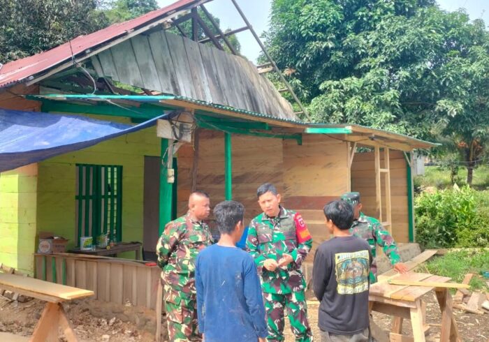 Minggu pagi itu, personel Satgas dan masyarakat bekerja berdampingan menata kayu dan menyusun struktur bangunan, mencerminkan kuatnya kemanunggalan TNI dan rakyat di wilayah perbatasan.