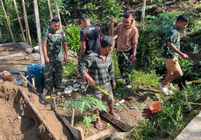 Pemandangan kemanunggalan antara TNI dan masyarakat terlihat jelas saat anggota Satgas dan warga bahu-membahu dalam proses pemasangan cerucuk. Dengan semangat gotong royong yang tinggi, pekerjaan berlangsung lancar meskipun medan yang dilalui cukup menantang.