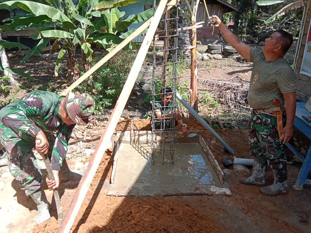 Meski cuaca cukup panas, tidak menyurutkan semangat para personel TNI dan warga untuk bekerja sama. Ada yang mengaduk semen, ada yang mengangkat ember cor, dan ada pula yang mengatur struktur pengecoran agar hasilnya rapi dan kokoh. Semua bergerak dalam satu irama kebersamaan.