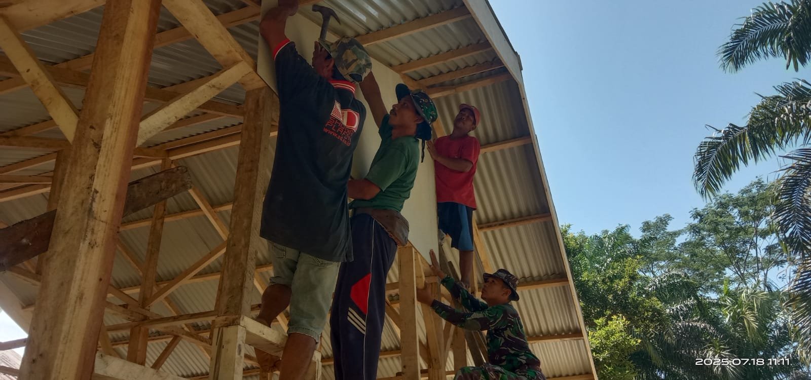 Dengan dinding yang mulai tertutup, suasana dalam rumah pun mulai terasa lebih nyaman dan terlindungi. Udara yang sebelumnya langsung masuk kini tertahan, dan bagian dalam rumah pun lebih aman dari gangguan cuaca. Harapan baru muncul bagi penerima manfaat RTLH ini, yang sebelumnya tinggal dalam kondisi rumah yang memprihatinkan.