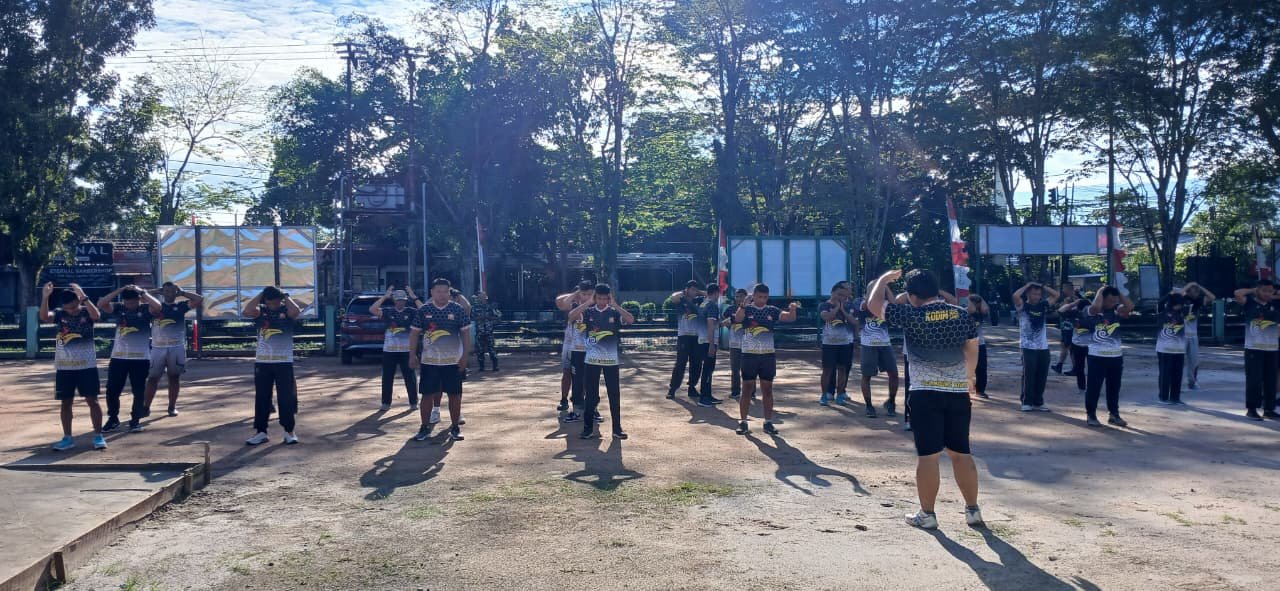 Kotawaringin Timur -Guba Menjaga Tubuh yang Prima ,Personel Kodim 1015/Sampit laksanakan kegiatan olahraga bersama, yang dilaksanakan di Makodim 1015/Sampit selasa (07/10) setelah apel pagi.