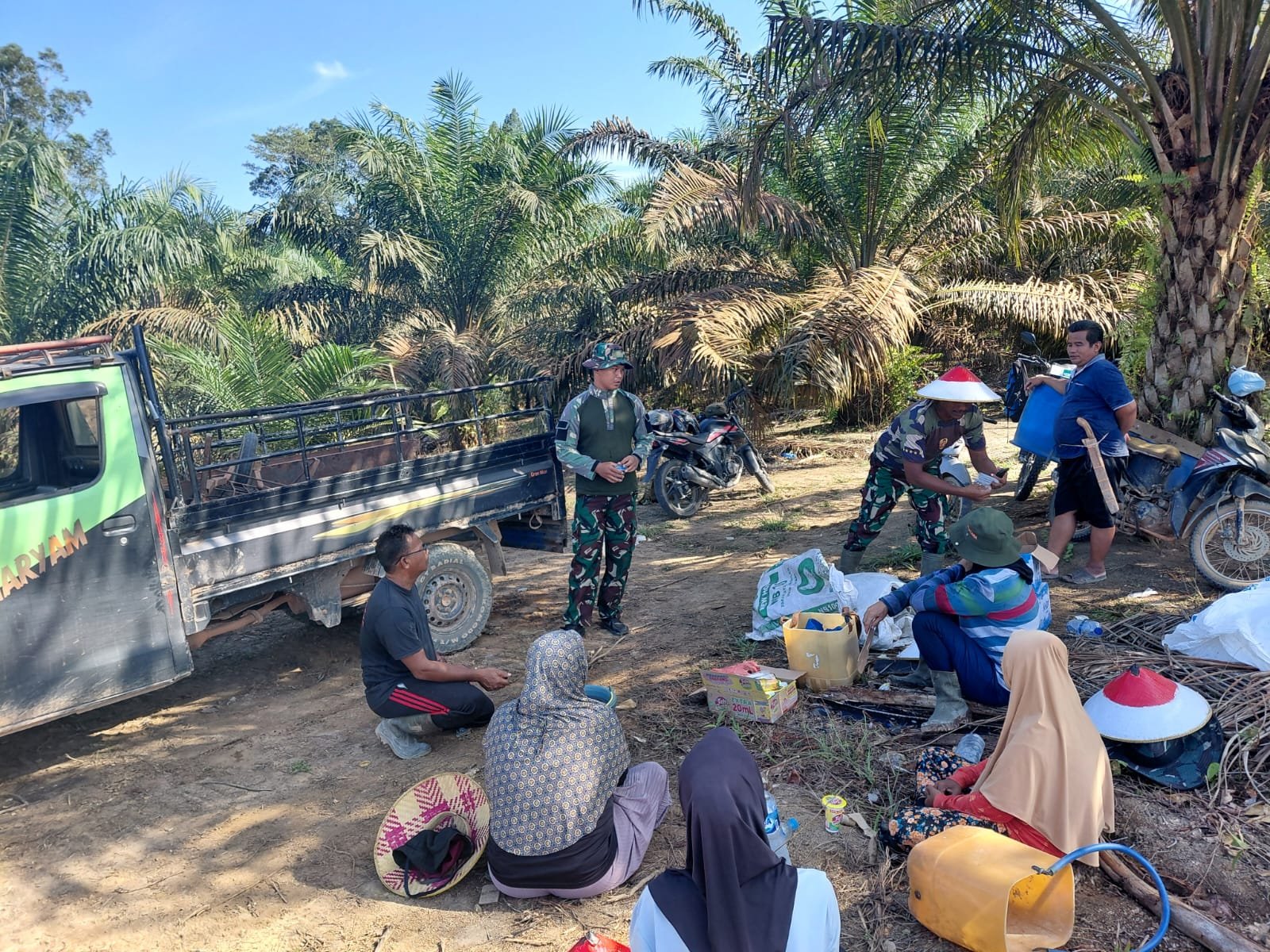 Hangatnya Kebersamaan Satgas TMMD ke-125 Kodim 1017/Lmd dan Warga Saat Istirahat Pengerjaan Ketahanan Pangan