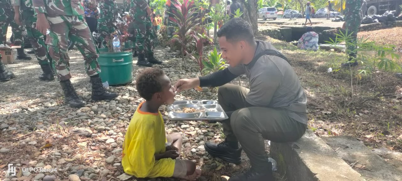 Mimika, 6 Mei 2025 – Suasana penuh kehangatan dan kasih sayang terpancar dari Dapur Lapangan Kodim 1710/Mimika di Kampung Pigapu, Distrik Iwaka, saat anggota TNI Angkatan Darat berbagi momen santap sehat bersama masyarakat, khususnya anak-anak.