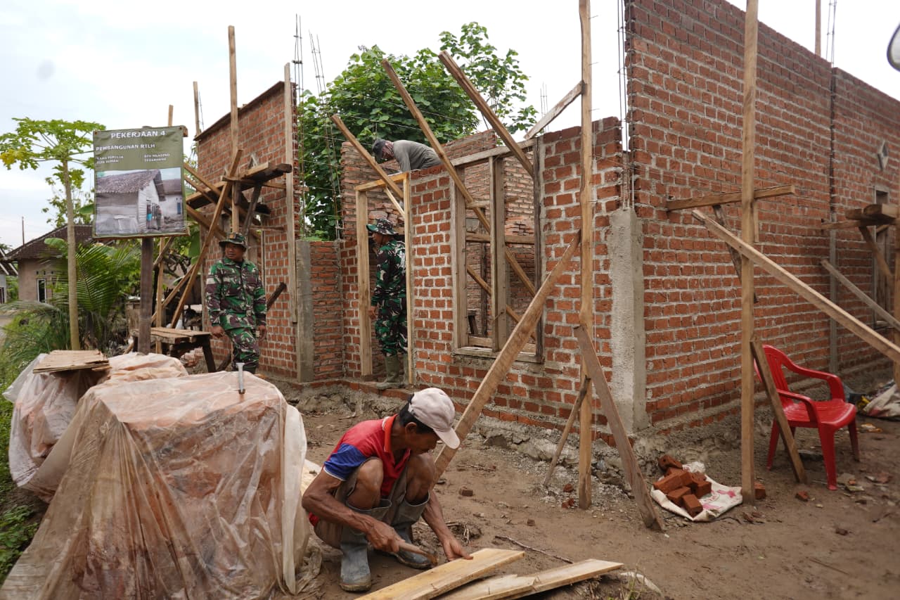 TNI bersama masyarakat setempat bekerja keras tanpa mengenal lelah. Meskipun mengenakan seragam loreng yang diselimuti debu bata, senyuman tetap menghiasi wajah mereka. Yang dibangun di rumah Bapak Ngadino bukan sekadar struktur, melainkan martabat dan tempat tinggal yang layak.