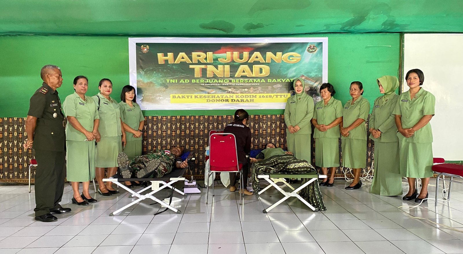 TTU – Dalam rangka memperingati Hari Juang TNI Angkatan Darat (TNI AD) ke-79, Kodim 1618/TTU menggelar kegiatan bakti sosial (baksos) donor darah di Aula Makodim 1618/TTU, Jl. Ahmad Yani, RT 021, RW 004, Kelurahan Kefamenanu Selatan, Kecamatan Kota Kefamenanu, Kabupaten Timor Tengah Utara (TTU), Minggu 15 Desember 2024