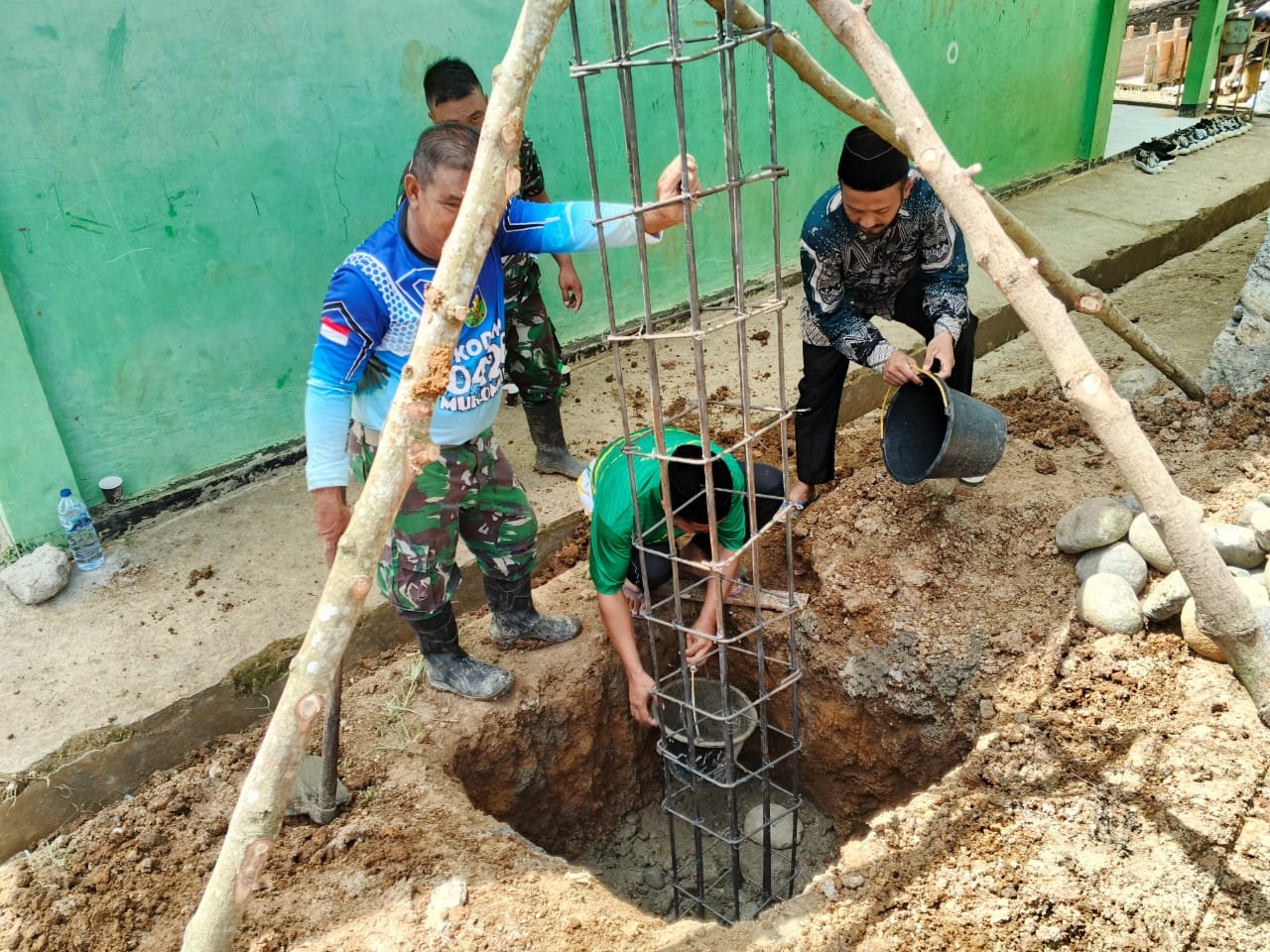 Lubuk Pinang, 2 Agustus 2025 — Pembangunan sarana air bersih di lokasi TMMD Reguler ke-125 Kodim 0428/Mukomuko terus menunjukkan progres signifikan. Di hari ke-11 pelaksanaan program, anggota Satgas TMMD melaksanakan pekerjaan pengecoran pangkal tiang menara untuk tandon (tedmon) air di titik sumur bor ke-2, yang berlokasi di kawasan Madrasah Tsanawiyah (MTS) Desa Sumber Makmur SP 8, Kecamatan Lubuk Pinang.