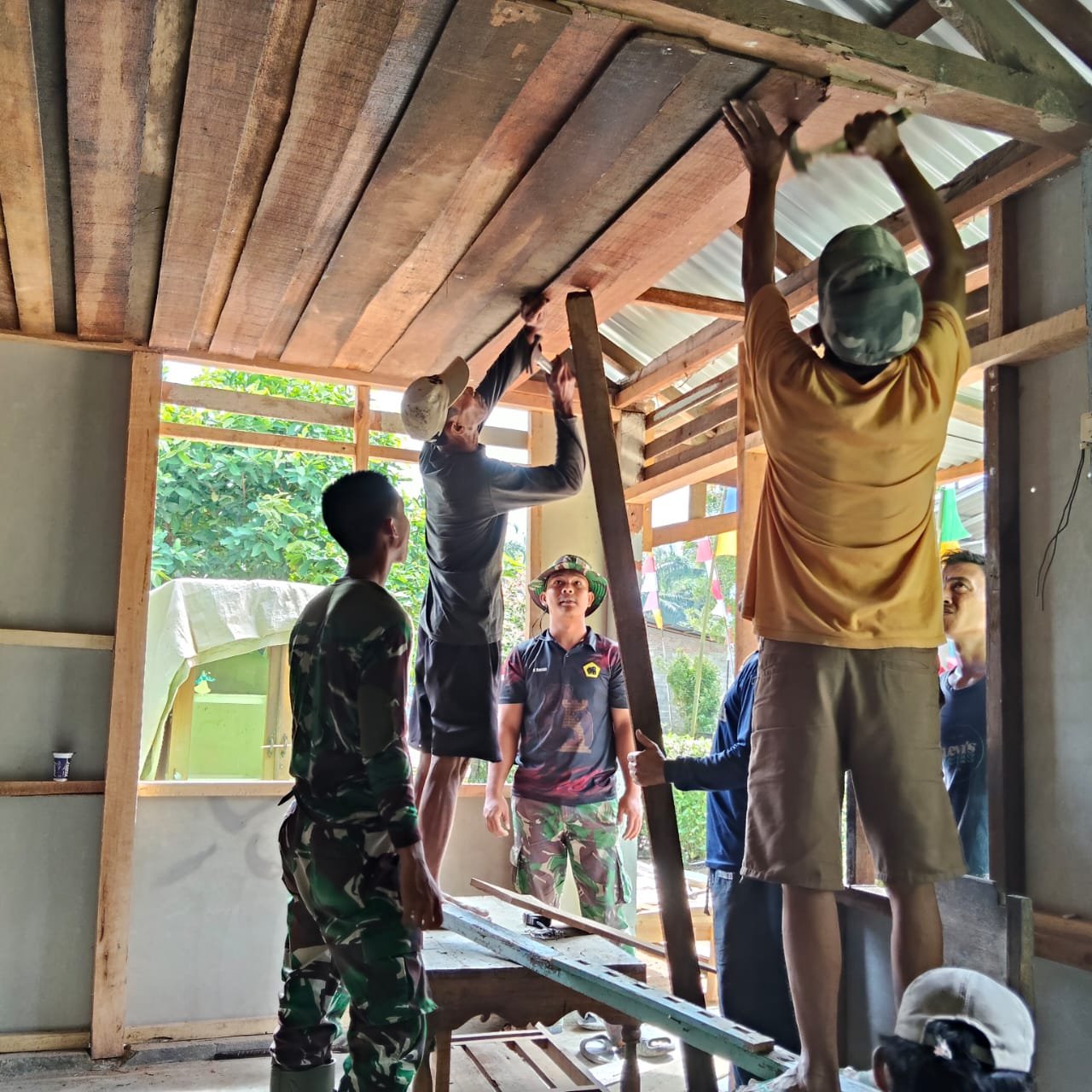 Mukomuko, 12 Agustus 2025 – Suasana kerja sama yang penuh semangat kembali terlihat di Desa Sumber Makmur SP 8, Kecamatan Lubuk Pinang, pada pelaksanaan hari ke-21 TMMD ke-125 Kodim 0428/Mukomuko. Kali ini, Satgas TMMD bersama warga fokus mengerjakan pemasangan plafon pada salah satu RTLH, menggunakan papan yang telah disiapkan sebelumnya.