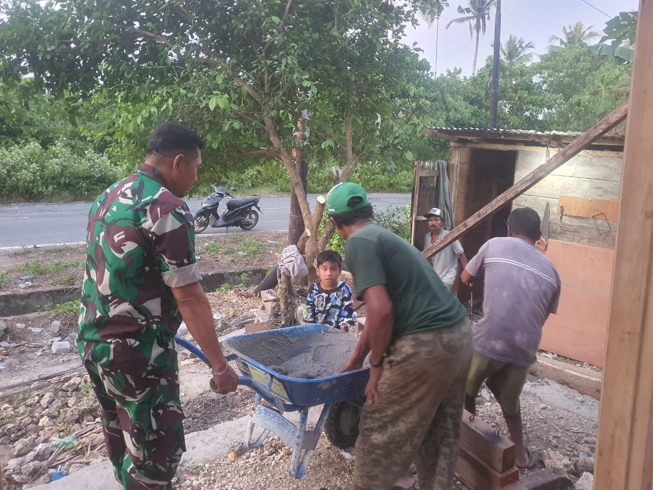 Halmahera Tengah-Babinsa Desa Bobane Indah Serda Kamarudin Malik melaksanakan Giat Karbak bersama Masyrakat membantu membuat Rumah milik Bapak Irfan,di Desa Bobane indah,Kecamatan Patani Barat,Kabupaten Halmahera Tengah.Selasa, (04/11/2025)