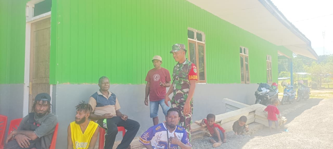 Keatisore – Babinsa Koramil 1705-03/Kwatisore, Serka Rudi Tampubolon membantu kegiatan Komunikasi sosial bersama masyarakat di Kampung Simbokeri Distrik Yaur, Kabupaten Nabire Propinsi Papua Tengah.