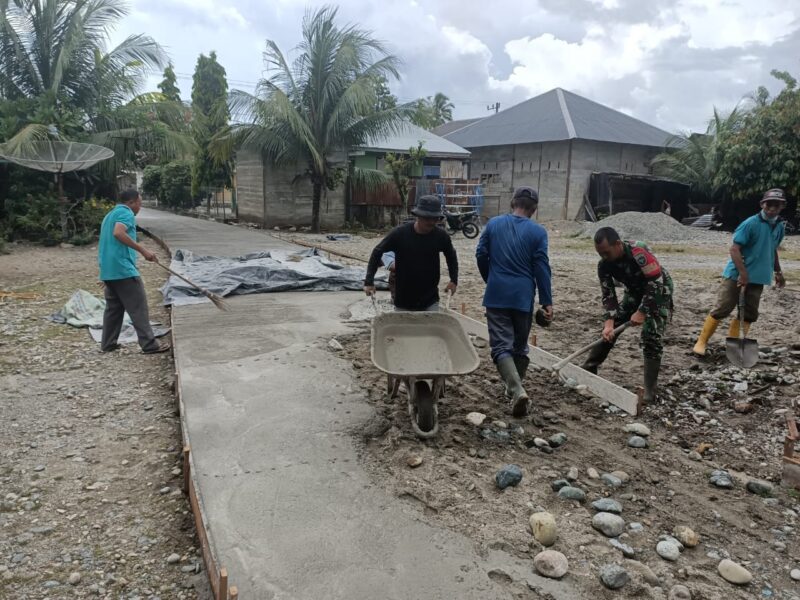 Nagan Raya – Semangat kebersamaan dan kemanunggalan TNI dengan rakyat kembali terlihat saat Babinsa Koramil 05/Darul Makmur, Serda Dedi Darmawan, bersama warga Desa Karang Anyar, Kecamatan Darul Makmur, Kabupaten Nagan Raya, melaksanakan kegiatan gotong royong pembangunan jalan rabat beton, Selasa (13/01/2026).