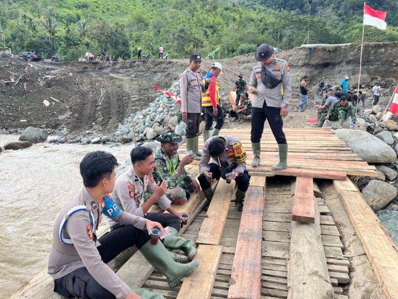 Nagan Raya – Dalam rangka meningkatkan silaturahmi dan hubungan kerja yang baik, Babinsa bersama Bhabinkamtibmas Beutong Ateuh Banggalang melaksanakan komunikasi sosial (Komsos) saat istirahat pengerjaan jembatan darurat di Desa Blang Meurandeh, Kecamatan Beutong Ateuh Banggalang, Kabupaten Nagan Raya, Jumat (19/12/2025).