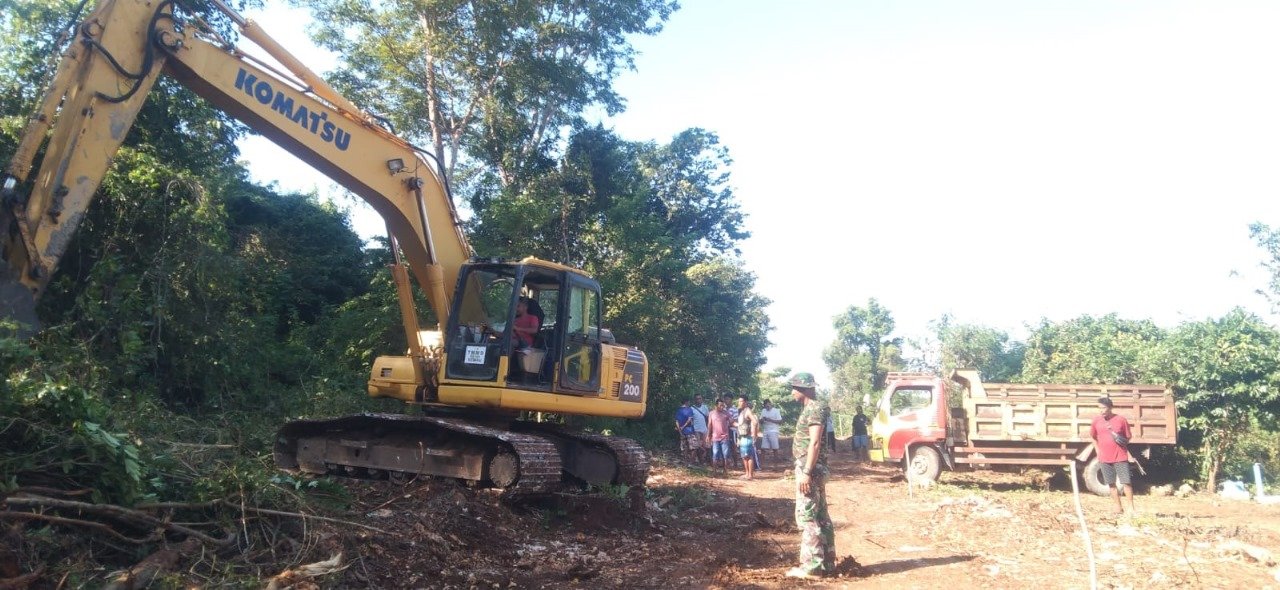 NTT-SEMAU, – Memasuki hari ke-7 pelaksanaan TNI Manunggal Membangun Desa (TMMD) ke-124 tahun 2025, semangat gotong royong tetap menyala di Desa Huilelot, Kecamatan Semau, Kabupaten Kupang. Anggota Kodim 1604/Kupang bersama Yonif 744/SYB dan masyarakat yang tergabung dalam Satgas TMMD terus melanjutkan pembukaan dan pengerasan jalan baru sepanjang 1,4 kilometer dengan lebar 3 meter. Di tengah terik matahari, para personel tetap gigih bekerja demi mempercepat pembangunan infrastruktur desa. Senin (12/05/2025).